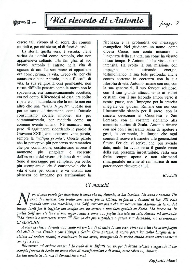 Sempre vivo il ricordo ad un anno dalla scomparsa e comune fu la voglia di pubblicare un'altra Edizione Speciale rimarcando quella mancanza che si avvertiva e si avverte tutt'ora in tutti gli angoli del nostro paese.